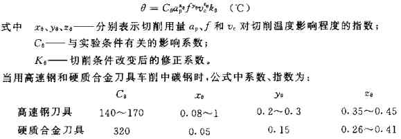 切削用量是影響切削溫度的主要因素。通過測(cè)溫實(shí)驗(yàn)可以找出切削用量對(duì)切削溫度的影響規(guī)律。通常在車床上利用測(cè)溫裝置求出切削用量對(duì)切削溫度的影響關(guān)系,并可整理成下列一般公式: