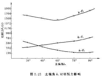 主偏角Κr減小時(shí),使切削寬度hD增大,切削厚度hD減小,因此,切削變形和摩擦增大,切削溫度升高。但當(dāng)切削寬度hD增大后,散熱條件改善。由于散熱起主要作用,故隨著主偏角kr減少,切削溫度下降。