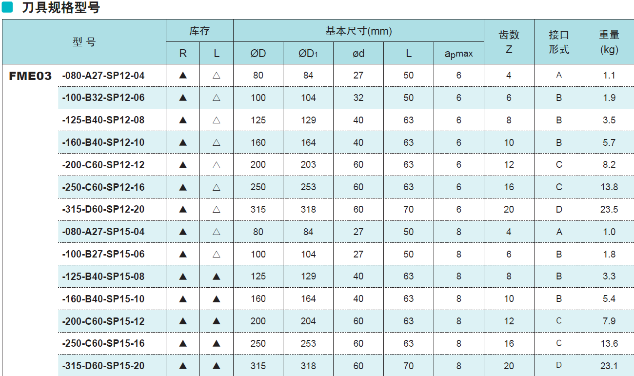 75度銑刀FME03 SPKN1504面銑刀尺寸規(guī)格參數(shù)