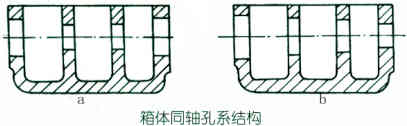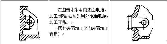 例如:在大批量生產中,圖a所示箱體同軸孔系結構是工藝性好的結構;在單件小批生產中,則認為圖b是工藝性好的結構。