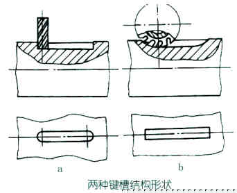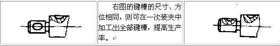 圖a所示鍵槽形狀只能用生產率較低的鍵槽銑刀加工,圖b所示結構就能用生產率較高的三面刃銑刀加工。