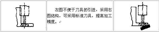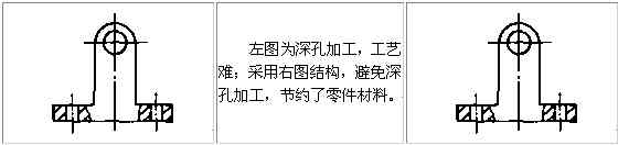 左圖為深孔加工,工藝難;采用右圖結構,避免深孔加工,節(jié)約了零件材料。