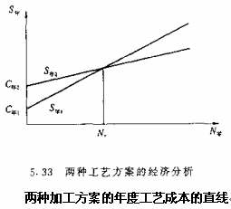 兩種加工方案的年度工藝成本的直線
